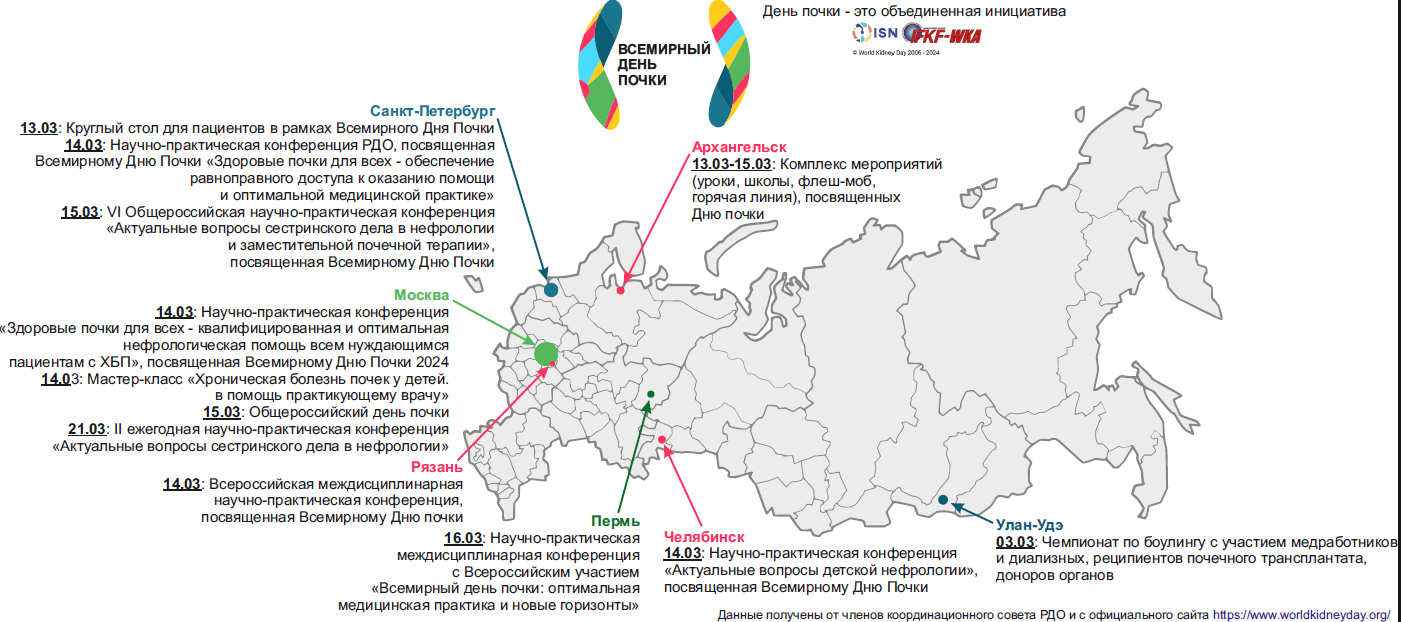 Карта мероприятий, посвященных Всемирному Дню Почки 2024