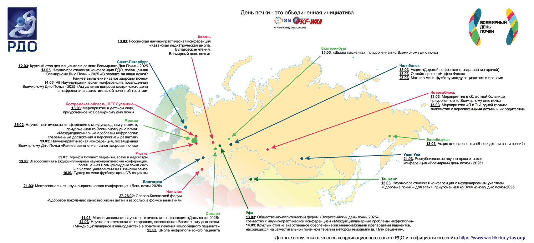 Карта мероприятий, посвященных Всемирному Дню Почки 2025